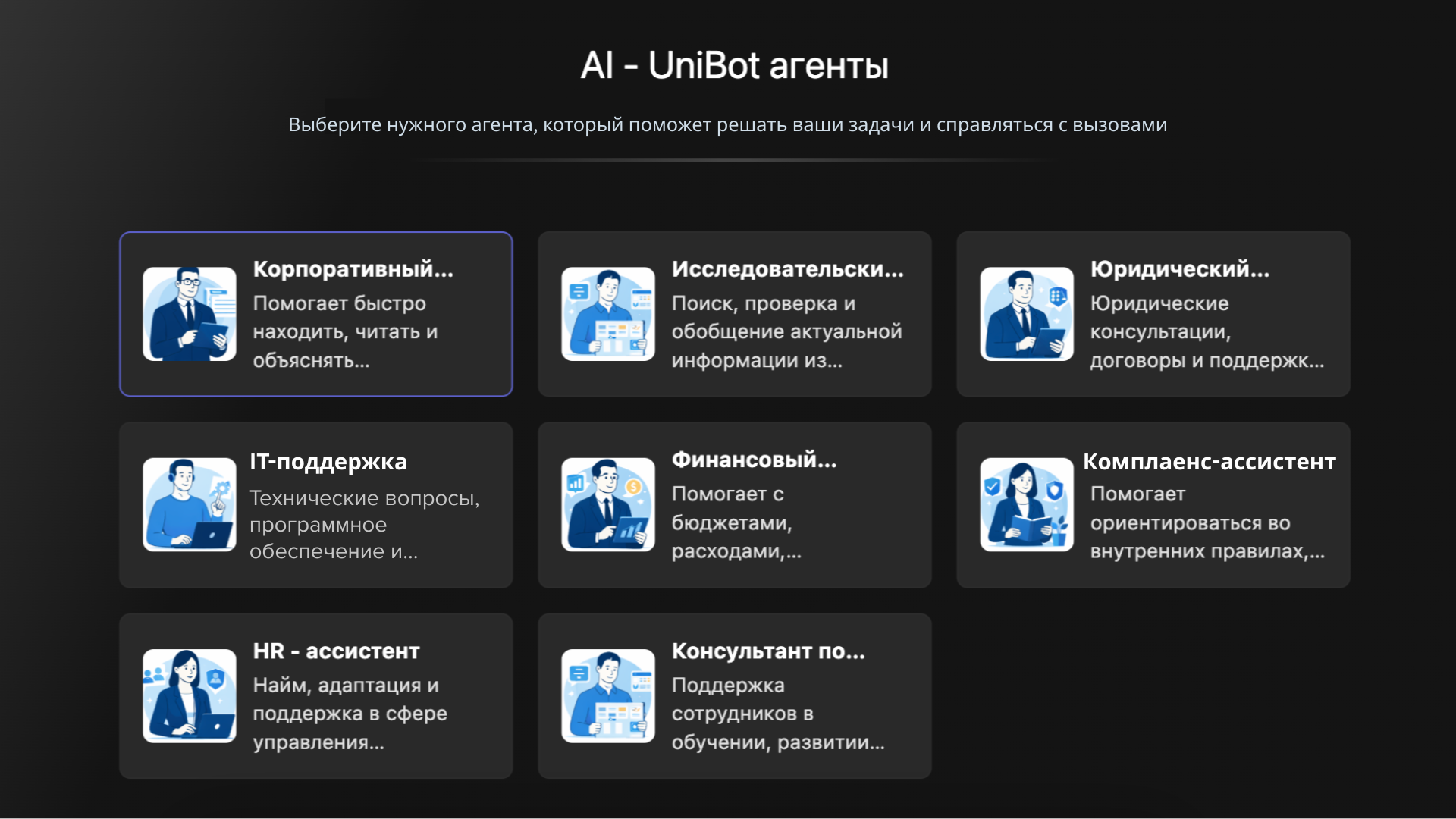 Персональный ассистент & Корпоративный чат-бот AI-UniBot получил полностью обновленный интерфейс. Ключевые изменения – расширенный функционал на основе Искусственного Интеллекта (АI), больше персонализации и значительно упрощенное управление.